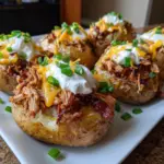 A delicious and hearty recipe featuring tender pulled pork mixed with ranch seasoning, stuffed into fluffy baked potatoes.