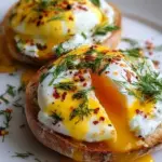 The sun begins to peek through the kitchen window, casting warm rays upon a plate that promises comfort and delight. Picture this: the soft swirl of yogurt, delicately seasoned, awaits the arrival of perfectly poached eggs with their rich and creamy yolks. As you nestle the golden toast beneath, you anticipate the moment when the warm, fragrant chili butter cascades down, creating an inviting landscape of flavors. The aroma envelops you, teasing your senses as you prepare for a dish that is nothing short of extraordinary – Çılbır Eggs Benedict Fusion.