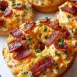 Deliciously crispy bagels topped with a creamy mix of bacon, cheddar cheese, and cream cheese, perfect for breakfast or a snack.