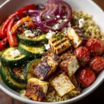Yes! The Healthy Grilled Mediterranean Bowl is vegetarian-friendly. It’s packed with nutritious veggies and can be made vegan by omitting the feta cheese or using a plant-based alternative.