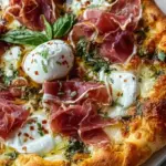 Picture the luxurious creaminess of fresh burrata cheese, spilling its rich, velvety insides onto your tongue. Each mouthful brings a delightful contrast: the delicate saltiness of prosciutto mingling with the smooth sweetness of honey, while the fresh basil enhances every bite with a herbal brightness that sings of summer. As you savor this glorious pizza, your senses awaken, transforming an ordinary meal into an extraordinary experience. This is not just food; it’s a celebration of life, flavor, and togetherness.