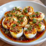 When you’re ready to serve, take the eggs out of the marinade. Garnish with chopped green onions for a fresh touch. These Korean Marinated Eggs Mayak are perfect as a snack, side dish, or even a topping for rice or noodles. Enjoy the burst of flavors with every bite!