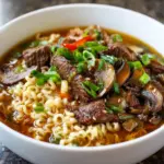A comforting and flavorful dish made with tender beef and ramen noodles, perfect for a cozy meal.